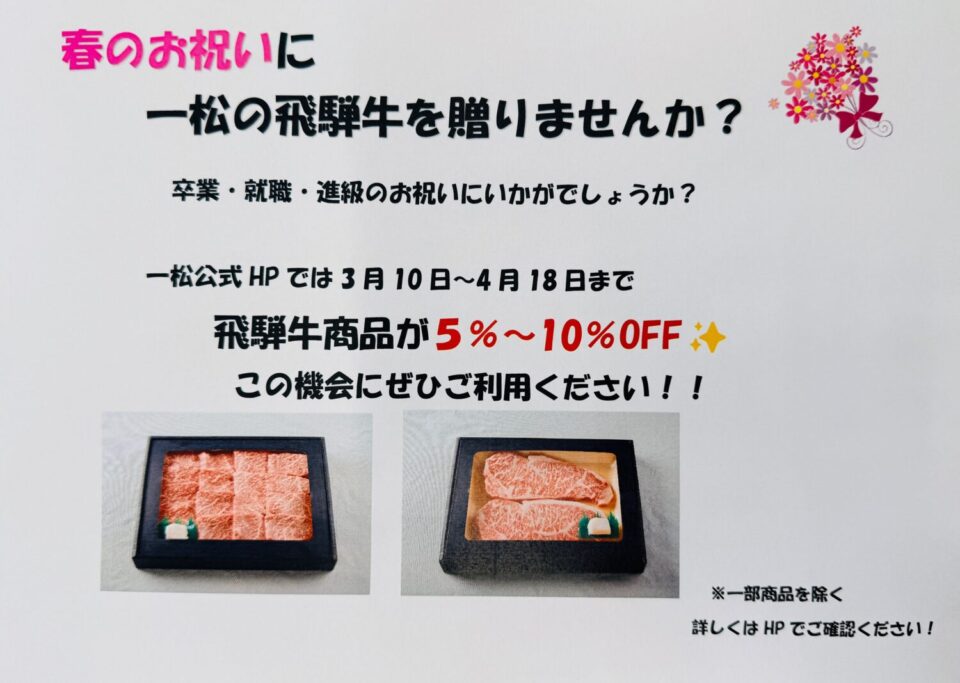 4月18日まで期間限定で飛騨牛商品がお値打ち価格となっております!